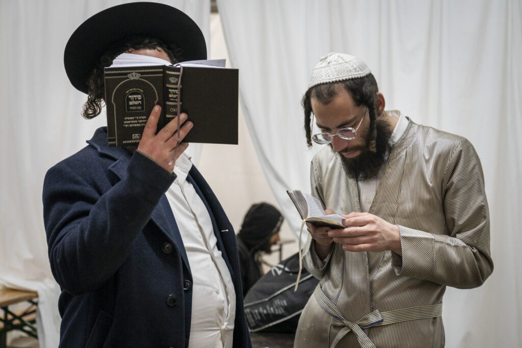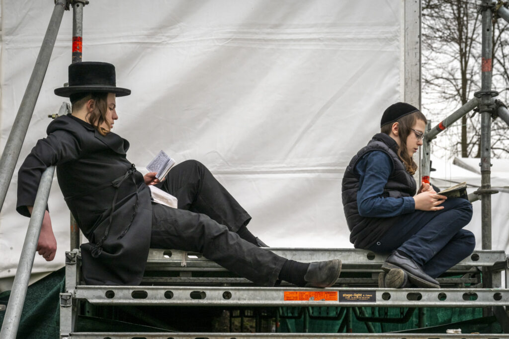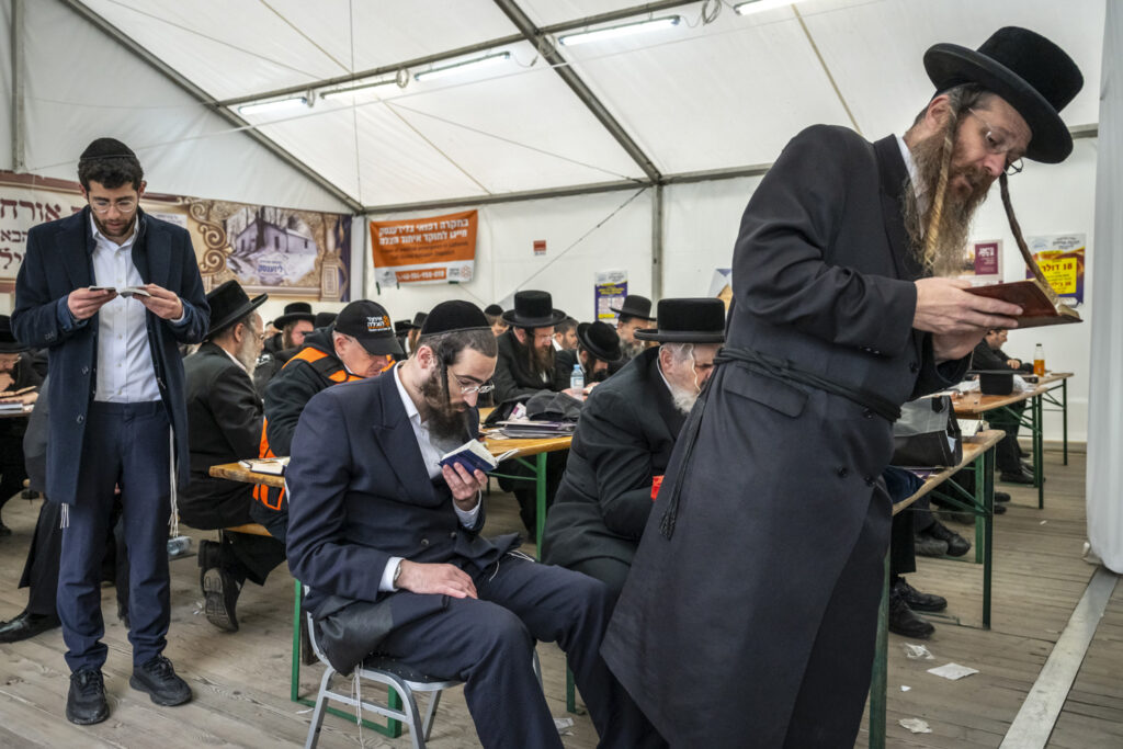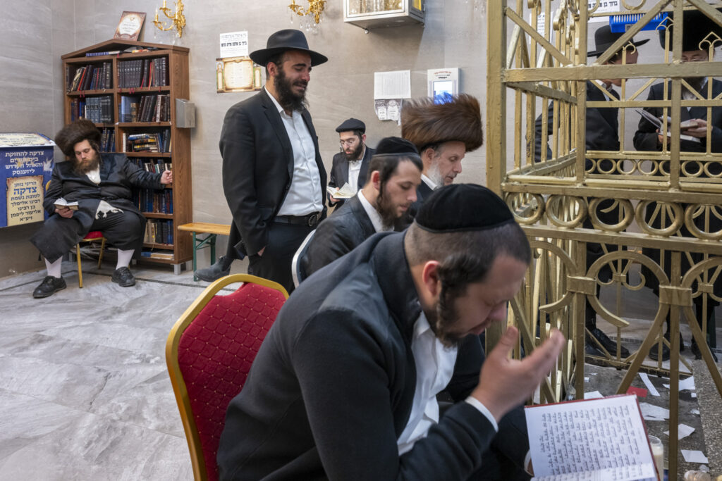 Lezajsk, Poland – March 31, 2024: Members of the Jewish diasphora during the 2024 pilgrimage of Hasidic Jews from around the world to the grave of Tzadik Elimelech Weissblum in Leżajsk near Rzeszów in South-Eastern Poland.